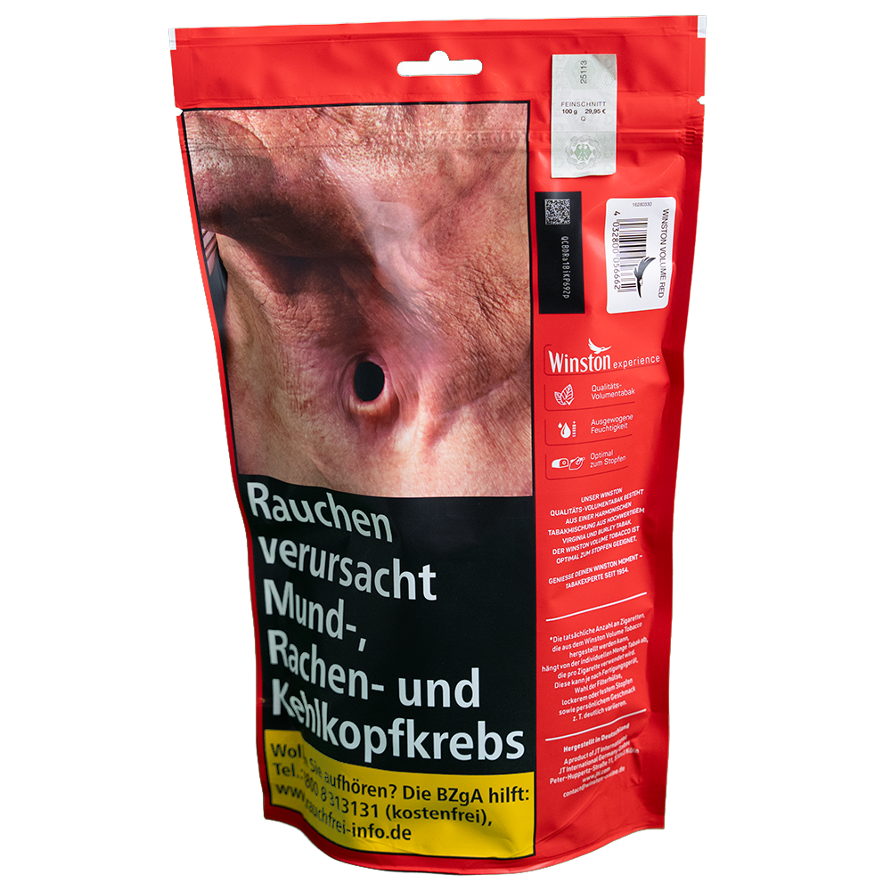 Der Winston Red XXL Volumentabak steht für intensiven, charaktervollen Rauchgenuss in bewährter Winston-Qualität. Mit seinem kräftigen, vollmundigen Geschmack und der optimalen Feuchtigkeit eignet sich dieser Tabak perfekt zum Stopfen gleichmäßig brennender Zigaretten.