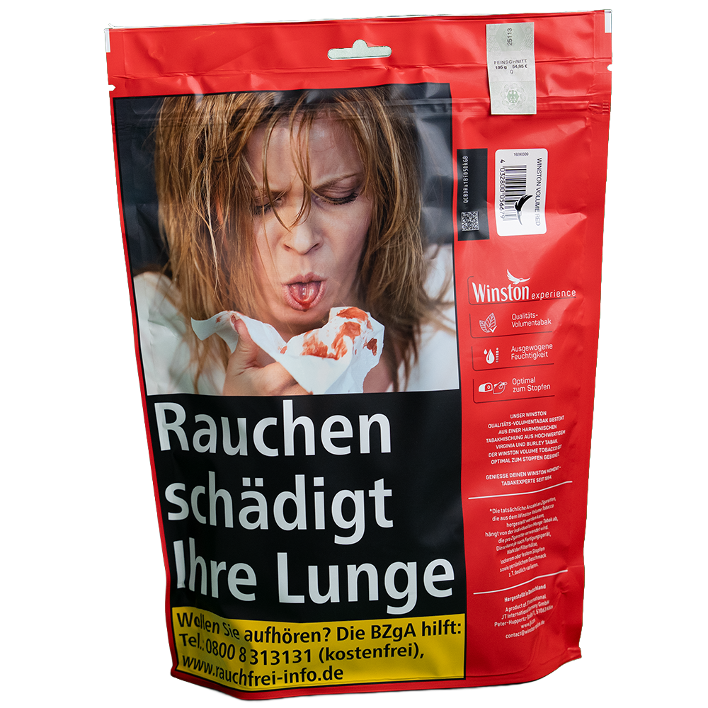 Mit dem großzügigen 195 g Nachfüllbeutel eignet sich Winston Red ideal für Vielraucher, die Wert auf Qualität und Wirtschaftlichkeit legen. Der Tabak überzeugt durch seine kräftige, unverfälschte Note und steht für die bewährte Markenqualität von Winston – authentisch, beständig und aromatisch.